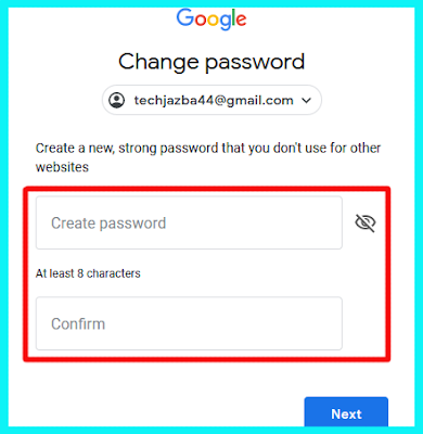 [Step 5] us ke baad aap ke saamne new password enter karne ka option khul jayega. waha per aap apna new password enter kare. aur next per click kare. to aap ka gmail account password successfully recover ho jayega.